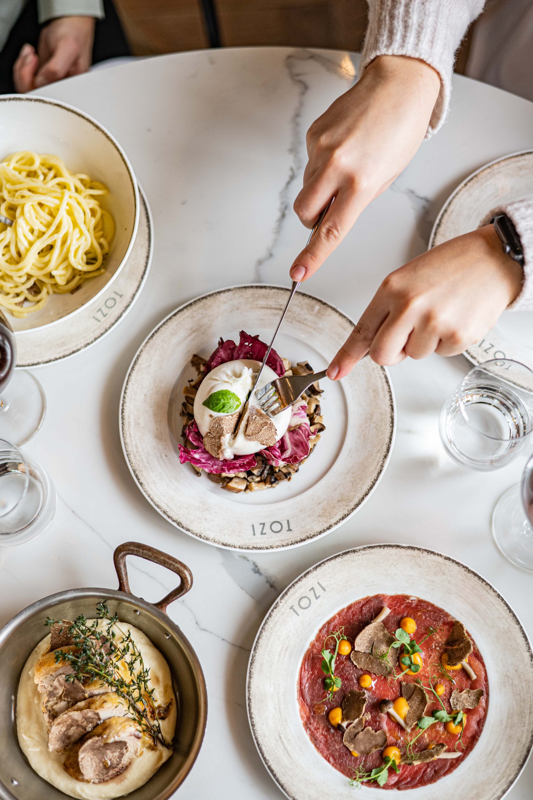 De witte truffel uit Alba, in de bergachtige regio Piemonte, moet worden gerespecteerd, daarom hebben we ervoor gekozen om het te combineren met eenvoudige smaken, die dicht bij de wortels van de aarde blijven, voor dit menu. De voorgerechten voor dit exclusieve TOZI-menu bevatten een aantal ingrediënten die bekend staan als perfect paar voor de witte truffel, zoals champignons, pompoen, rood vlees, pasta en risotto. En natuurlijk niet te vergeten een heerlijke met truffel gevulde Burrata d’Andria. Maar naarmate het menu vordert, vieren we een paar meer ongewone maar nog briljantere combinaties, zoals vis, wit vlees en zelfs chocolade om die klassieke clichés te vermijden.